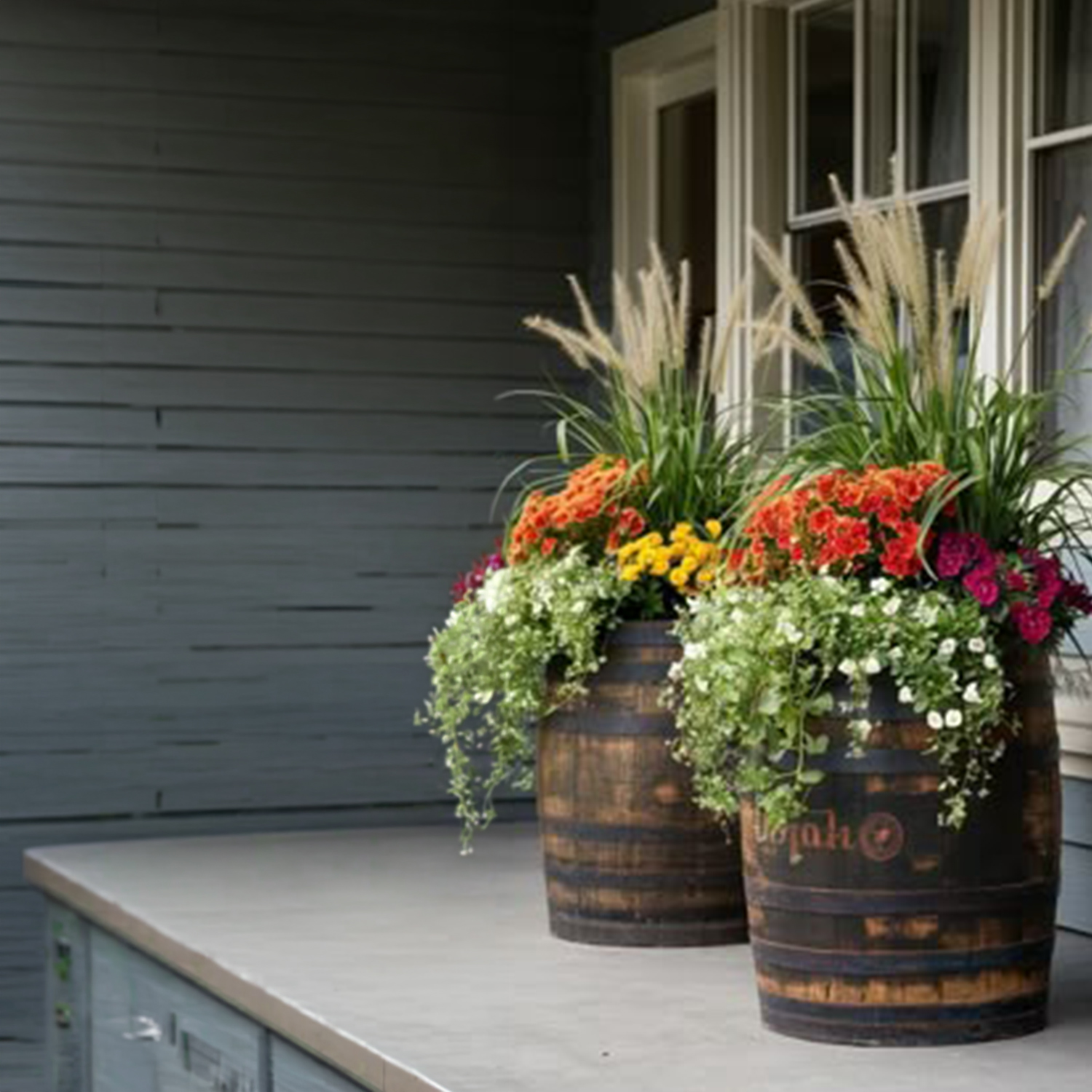 Container planting brings life, colour, and texture to patios, entryways, and balconies. We create seasonal arrangements that feel fresh, balanced, and welcoming — designed to enhance your space with minimal maintenance and maximum impact.